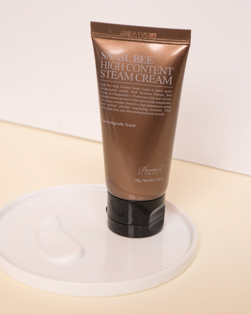 The Snail Bee High Content Steam Cream by Benton is formulated with snail mucin to deeply hydrate skin.