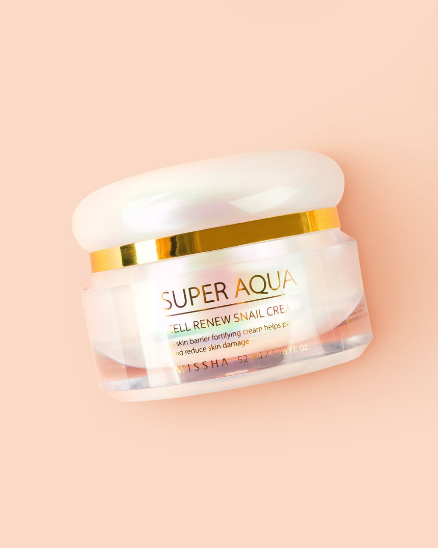 The light gel texture of Missha Super Aqua Cell Renew Snail Cream absorbs well while leaving a dewy finish and fresh scent.