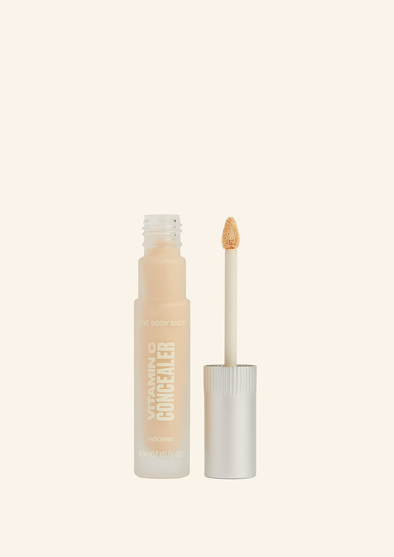 Radiant skin can be yours in an instant with our new, multi-functional Vitamin C Concealer. powerhouse concealer enriched with Vitamin C, it’s lightweight, buildable, non-cakey and helps to conceal blemishes, dark circles and beard shadow in a flash. No creases here. It comes in 20 shades, so your perfect match awaits. Swipe the doe-foot applicator anywhere you want to conceal or brighten. The silky formula blends seamlessly into skin for a natural finish that lasts all day, targeting uneven skin tone and dark circles to leave your complexion looking more radiant. Certified by The Vegan Society and made with 95% ingredients of natural origin, this little superhero is blended with Vitamin C, to help keep your skin looking lit-from-within. And the best bit? It has an uplifting citrusy scent, just like our Vitamin C skincare range. Multi-tasking crease-proof concealer Conceals the appearance of blemishes and dark circles Offers long-lasting coverage for beard shadow Lightweight, buildable & lasts all day Enriched with natural origin Vitamin C 100% recyclable glass bottle 95% ingredients of natural origin Certified by The Vegan Society Where local facilities allow.